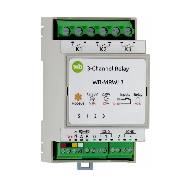 Модуль мощные реле 3 канала WB-MRWL3, 4DI