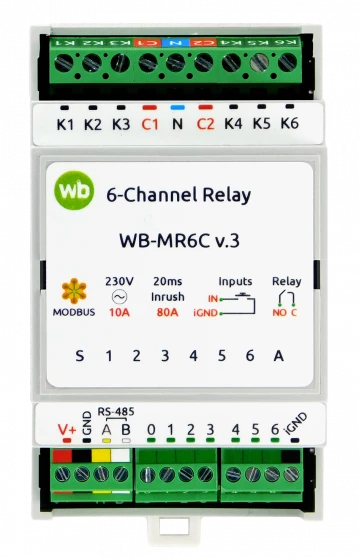 Модуль реле 6 каналов WB-MR6C_v3, 7DI, БП